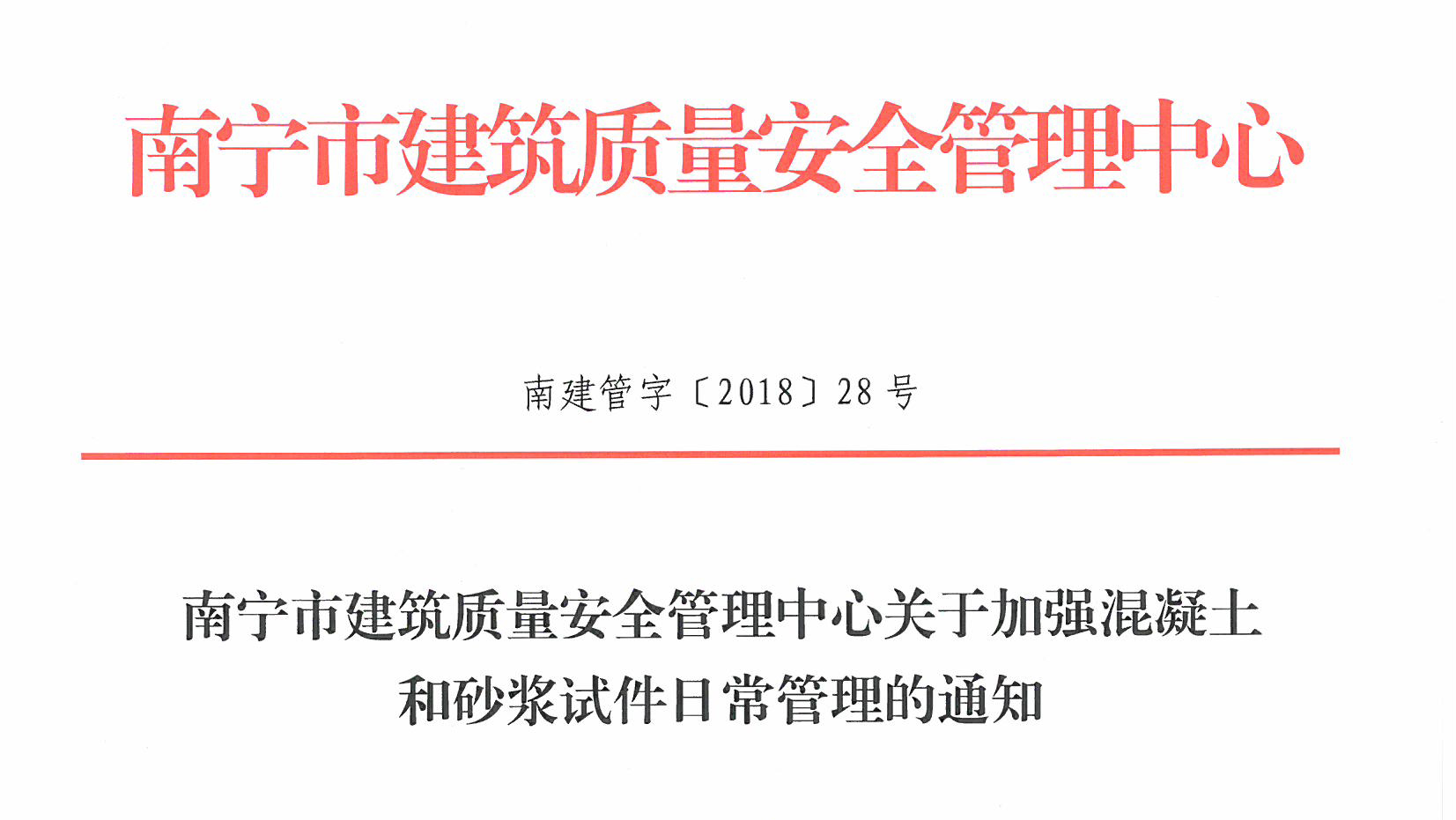 南寧市建筑質(zhì)量安全管理中心關于加強混凝土和砂漿試件日常管理的通知